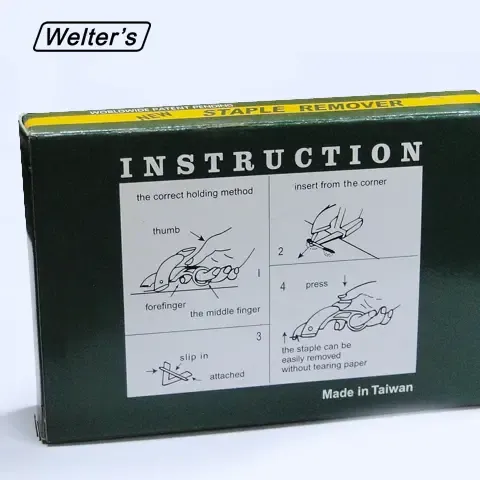 This professional-grade scissors-style staple remover exemplifies precision engineering and versatility in document management. Designed with meticulous attention to ergonomics, it operates with a familiar scissors-like motion, ensuring comfortable and efficient staple removal. The device's sophisticated mechanism prevents damage to delicate papers while effectively handling multiple staple sizes, including No. 10, No. 3 (24/6), 26/6, and B8. Its modern aesthetic complements any professional workspace, while its robust construction guarantees reliable performance for high-volume office environments. This essential tool represents the pinnacle of staple removal technology, combining functionality with professional elegance.